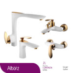 شیر روشویی البرز روز مدل لورنزا با ظاهری مدرن و آبکاری سفید طلایی